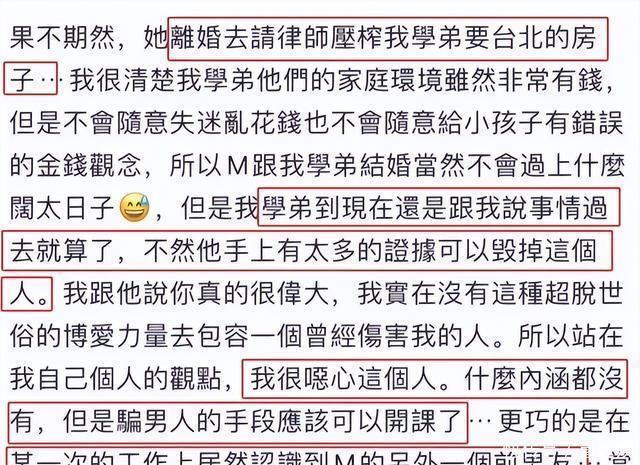 先是前夫站出来爆料仳离原因,紧接着又有自称是其前夫前女友、师姐和好一又友的“盛大网友”周女士现身发难,长文爆料马筱梅的各种不胜。 这些爆料如同重磅炸弹,一忽儿引爆了聚积。 在真相与流言交汇的迷雾中,咱们究竟应该笃信谁?谁又能的确看清事实的真相? 情谊纠葛,东谈主性清明与暗澹的碰撞 在这场二婚风云中,咱们看到了东谈主性的复杂与多面。